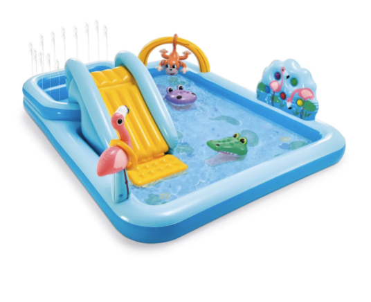 ¡Viaja al centro de la jungla con INTEX! Este nuevo centro de juegos acuático te lleva a uno de los ríos más divertidos de la jungla tropical, donde los animales juegan y se bañan junto a ti. ¡Acércate a conocer a todos los animales!